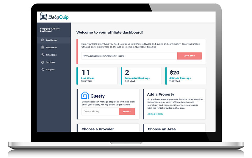 Provide your guests with a seamless baby gear rental experience by sharing your custom affiliate link. Guests will be directed to the rental provider(s) servicing your location and we’ll even autofill your address making checkout a breeze. Families staying with you will love how easy it is to rent baby gear from BabyQuip.