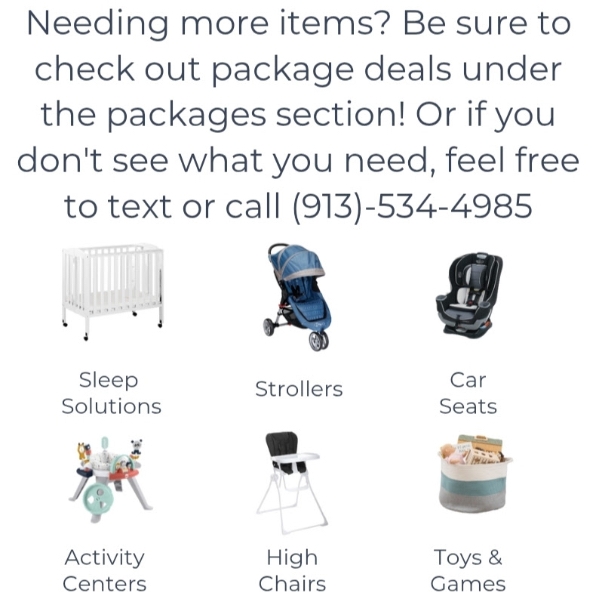 I can add listings anytime: So if you're wanting to rent or purchase an item you don't see on the site, please feel free to ask to see if I can add it for you! I also offer package deals to help you save a little when needing multiple items and I can create a custom package for your needs at any time!