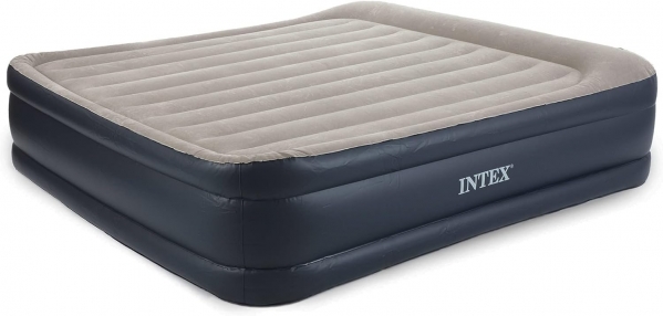 Enjoy a good night's rest and a quick set-up on all of your camping trips with the Intex Blow Up Mattress Air Bed. Perfect to take camping or to use as an extra bed for house guests, this inflatable air mattress features Fiber-Tech interior construction for firmness and support. The velvety mattress top allows for comfortability and softness, making anywhere the perfect spot for sleep and relaxation. Raised 16.5 inches for your convenience, this air bed also has indented sides to help grip fitted sheets and an outer perimeter frame to provide additional stability and support. This inflatable mattress comes with built-in a powerful internal pump for rapid inflation and deflation. With an approximate inflating time of 3.15 minutes, you can begin to use the air bed right away. For a great rest, convenience, and a no-hassle set-up add Intex Blow Up Mattress Air Bed to your next camping trip or guest room.