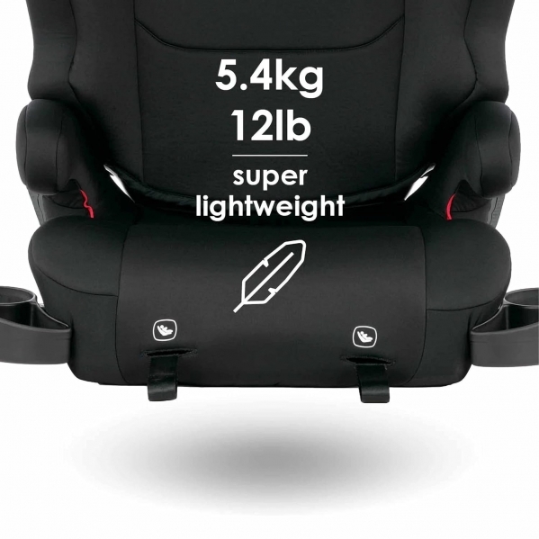 The Cambria 2 is a spacious and roomy high back booster seat with 6-position head support. It can be used without the back. Its ergonomically contoured seat surface has extra length for better leg support. It has two latch connectors to attach to the vehicle and uses the vehicle seat belt. The weight limitations are 40-130 pounds, and the height limitations are 38-63 inches.