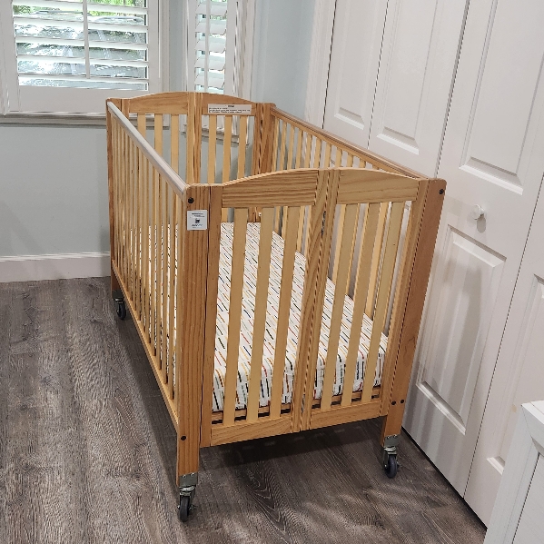 Give your little one a safe, comfortable place to sleep while you’re away from home. Our full-size crib provides the same spacious sleep environment your baby is used to, helping make naps and bedtime feel familiar, even on vacation.