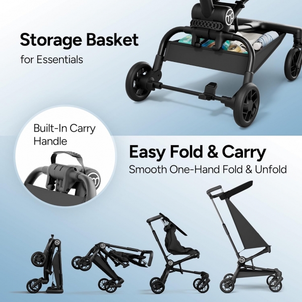 The Mompush Jeto stroller features a lightweight yet durable frame that folds easily for travel and storage, making it an ideal travel stroller rental for vacations, weekend getaways, and visits to family. Its smooth maneuverability and compact design are perfect for tight spaces, sidewalks, and busy destinations.