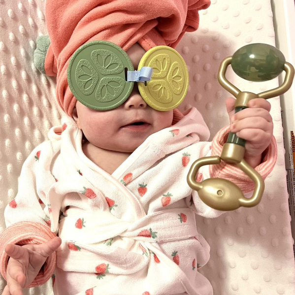 Baby can get in on the GRWM trend with this Mini Me Moments Self-Care Sensory Set from Fisher-Price. Featuring classic newborn activity toys styled as familiar grownup self-care items, this 6-piece gift set includes a rattle face roller, squeaker puff, clacker cucumber slices, chewy teether gua sha, double-sided crinkle face mask, and a spinning mirror. Little ones can “treat” themselves to engaging sensory play that also helps foster grasping, curiosity, and cause & effect.