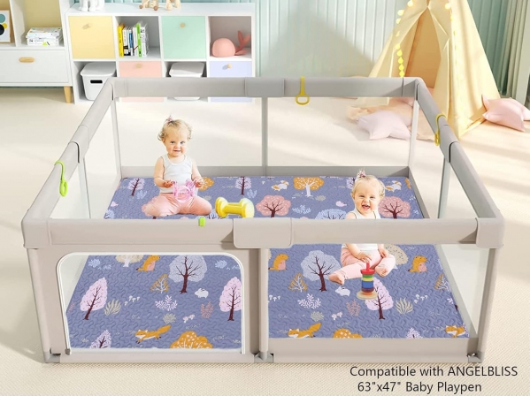 • Grow Up in Playing and Learning: Baby mat measuring 63 x 43”. Playpen mat provides your baby soft and extra large area for playing, crawling, sitting, rolling and tummy time, boldly keep curiosity and exploring, help developing with brain and body.