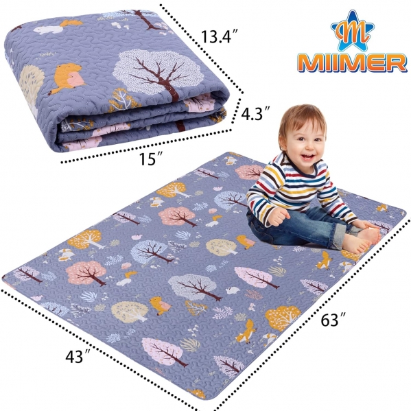 Rent Baby Gear INCLUDING MIIMER Washable Baby Play Mat Portable Playmat for Babies 63x43”, Foldable Toddler Playpen Mat Non-Slip Baby Tummy Time Mat, Soft Floor Play Mats for Infants Extra Large Crawling Mat Grey Forest 63" x 43" | BabyQuip