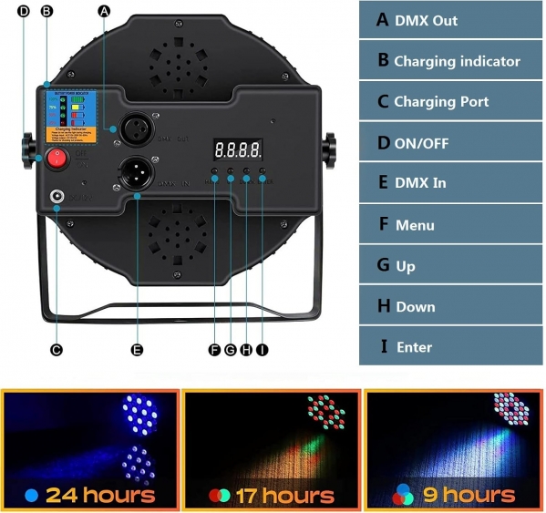 • Wireless par lights with built-in large capacity battery for continuous use more than 12 hours. And without the trouble of cluttered wires, making your space clean and tidy.