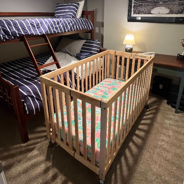 Brand of crib (Dream on Me or Foundations) will vary based on availability.