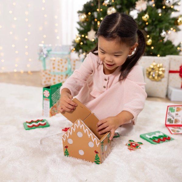Make this holiday season extra special for your grandchildren with the Melissa and Doug Wooden Gingerbread House! Piece together and decorate a re-buildable wooden gingerbread house for a festive pretend play celebration anytime. Decorate again and again with wooden pieces and icing cords that stick to self-stick tabs on the house. Your little ones will love playing with this over and over this holiday season.