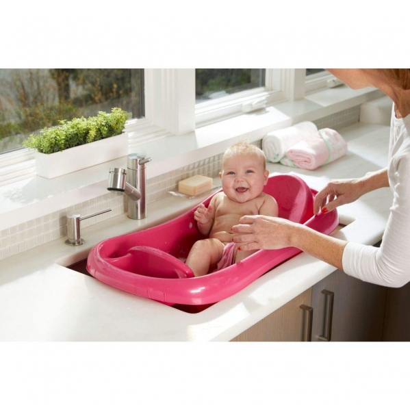 This baby bath tub can be used for infants and toddlers up to 25 lbs. It is meant to be used inside a standard bath tub or on a large counter space or sink. There is an optional sling to cradle little ones or it can be removed for larger babies.
