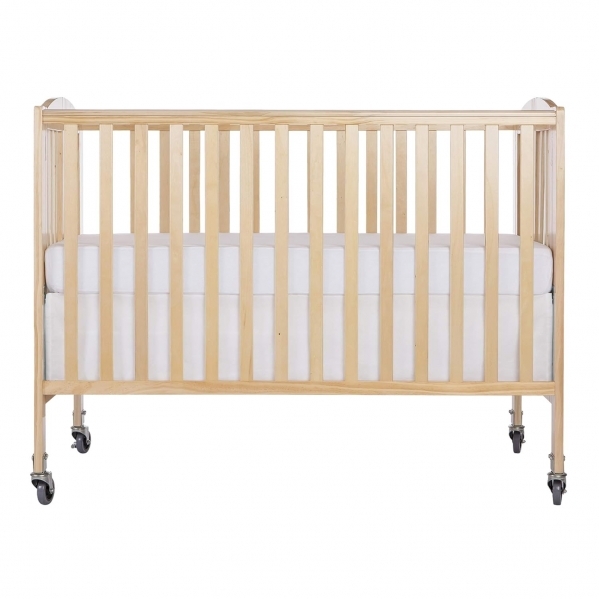 Dream On Me, Folding Full Size Crib 673, is the only 2 position folding crib available making it a must have piece of furniture for any growing family. When your child outgrows the crib simply fold flat using the patented folding system and store. No disassembly involved, now that’s convenience! This crib is ready to use again by simply unfolding and locking into place making it perfect for guests with babies, grandparents and daycares. The stationary rail design (non drop side), dual safety hooded locking wheels and a beautiful finish ensure safe use now and in the future.