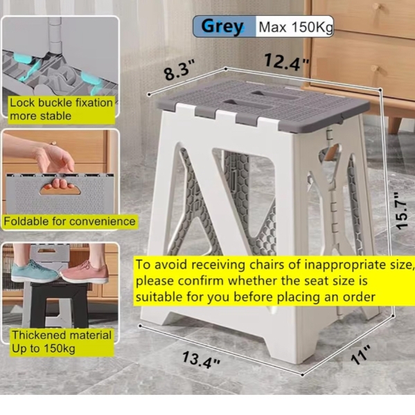 • PACKAGE INCLUDED - Fold Bath Shower Safety Chair, 15.7"/40cm High Grey. The seat size is 12.4" x 8.3“. To avoid receiving chairs of inappropriate size, please confirm if the seat size is suitable for you before placing an order.