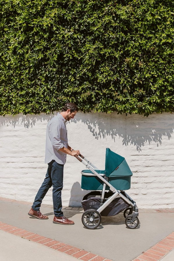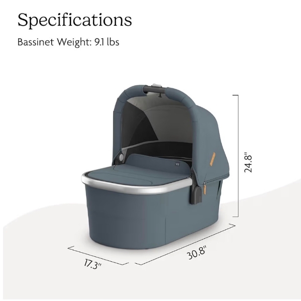 Transform your CRUZ into a pram ideal for your newborn or add a second bassinet to your VISTA for twins. Whether for naps on the go or overnight sleeping, the bassinet allows your baby to lie completely flat. Suitable from birth up to 20 lbs or until infant can push up on hands and knees, whichever comes first one handed release from stroller overnight sleep solution Extendable, UPF 50+ sunshade Canopy unzips for added air flow Removable, breathable mattress pad Vented base and mattress for breathability Machine washable mattress cover and zip-out liner Bug Shield included Compatible with VISTA 2015-later, VISTA v2, CRUZ, and CRUZ v2 strollers Fits onto bassinet stand (sold separately)
