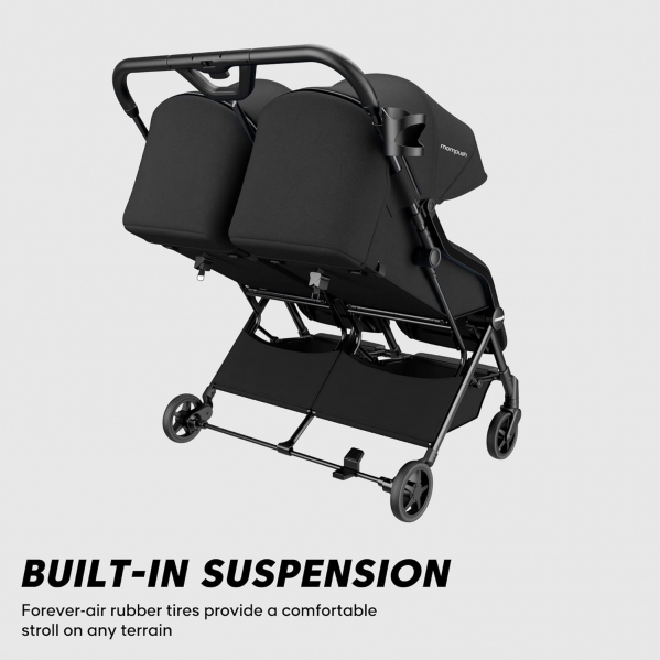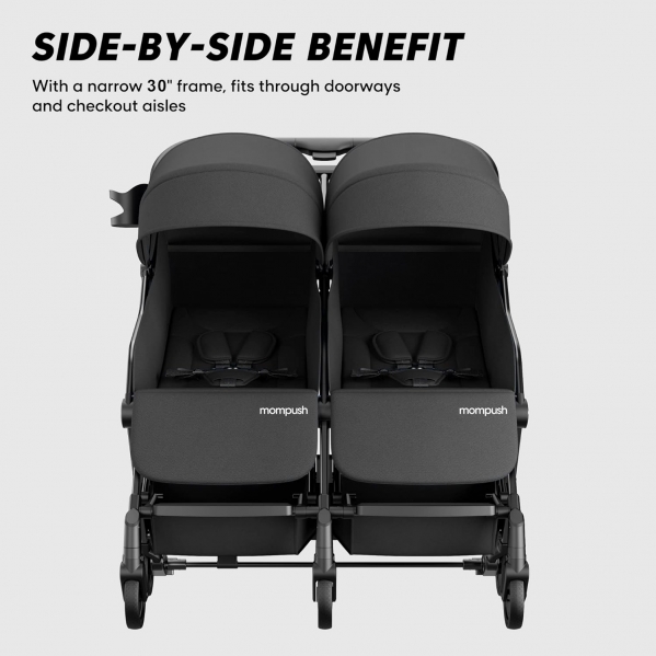 NAVIGATE TIGHT SPACES WITH CONFIDENCE – At just 30 inches wide, this side by side stroller glides through standard doorways and supermarket aisles where wider doubles get stuck. Forever-Air puncture-proof rubber tires and all-wheel suspension absorb every bump, keeping little ones peacefully asleep. Each seat includes a secure 5-point harness and a rear foot brake for peace of mind.