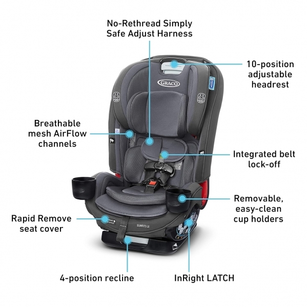 The Graco® SlimFit3™ LX 3-in-1 car seat is Graco's skinniest, space-saving car seat. At just 16.7 inches wide and fits 3 car seats across, saving space in your back seat without compromising safety. This car seat can be used safely three ways: