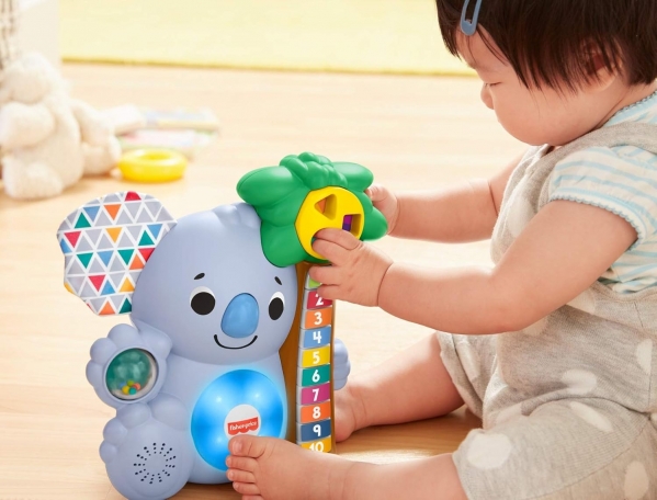 Climbing up a palm tree with their koala friend, baby makes a startling discovery: this tree grows squares, triangles and circles. The Linkimals Counting Koala from Fisher-Price is a musical learning friend for babies with exciting lights, songs, and phrases that introduce numbers, counting and shapes. And when Counting Koala meets up with other Linkimals friends, they light-up, talk, sing and play together!