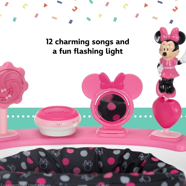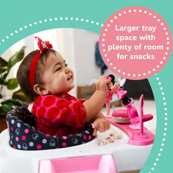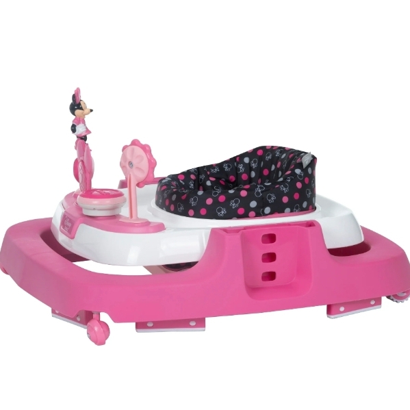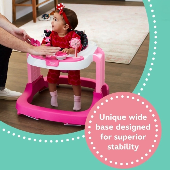 Let your little one take their first steps with the Disney Ready, Set, Walk DX! With a comfy, machine-washable seat and extra-wide base for support, this walker keeps your baby safe as they explore. Fun toys, 12 cheerful songs, and engaging activities stimulate their senses while the adjustable height grows with them. Perfect for snack time with its tray, and easy to fold for storage or travel. Supports babies up to 30 lbs.