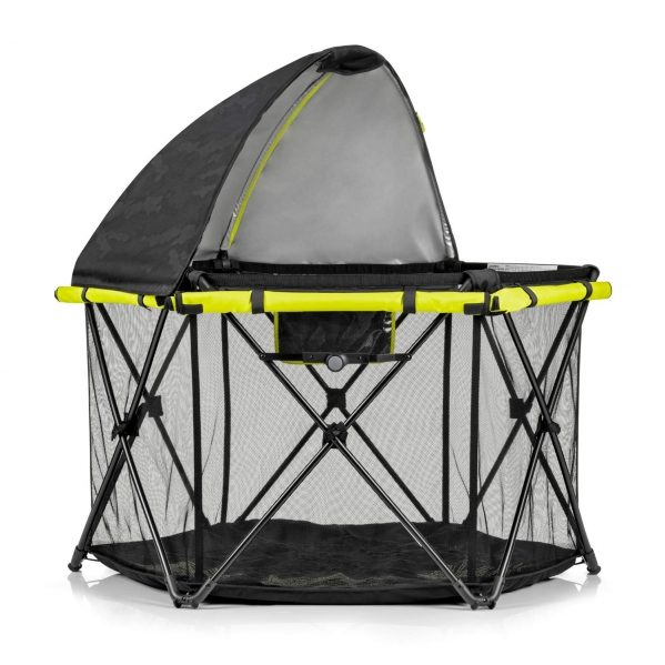 Keep your little one safe and contained with the Play-Away Portable Playard Deluxe, perfect for both indoor and outdoor use. It features a detachable UPF 50+ sun canopy, breathable mesh sides with roll-down shades, and a water-resistant padded floor that’s easy to clean. The sturdy frame folds quickly and stores in the included travel bag for easy transport. With 15 sq. ft. of play space, it offers plenty of room while staying compact and travel-friendly.