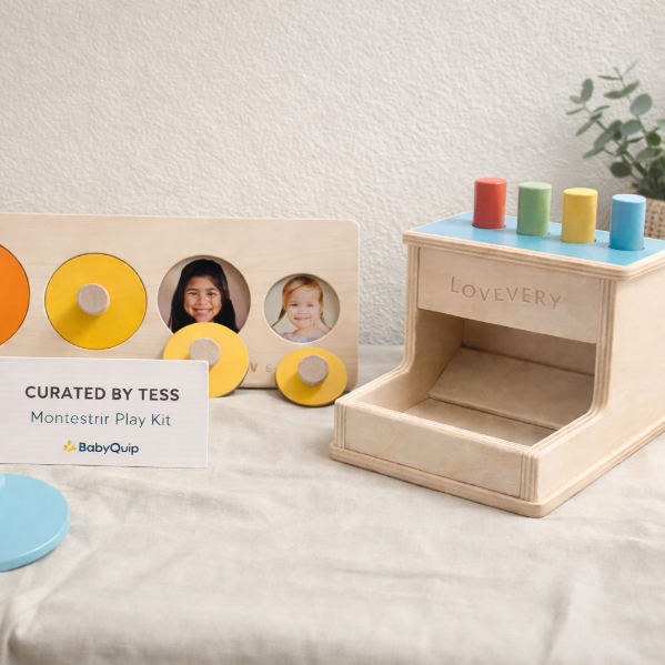 This play bin includes 6–10 high-quality toys, carefully chosen to match your child’s age and interests. Items may include toys from well-known educational brands such as Lovevery®, Melissa & Doug®, and other makers of natural wood, silicone, or soft developmental toys.
