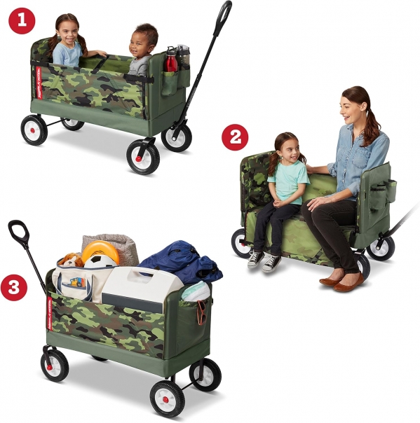 Rent Baby Gear INCLUDING Radio Flyer 3-in-1 Camo Wagon Green, 39.37 x 18.50 x 30.71 Inches | BabyQuip