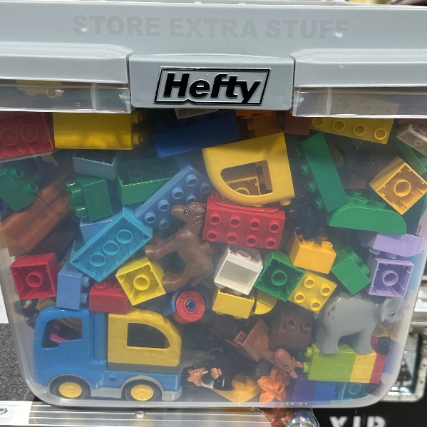 You will get a box of duplo Lego blocks with a large variety of pieces. Includes cars, people and animals