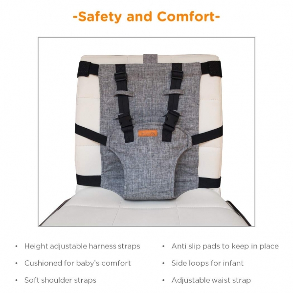 liuliuby Travel Harness Seat – Portable Safety Harness Chair Accessory for Baby & Toddler - Cloth Portable High Chair for Travel - Padded and Machine Washable - Convenient Baby Travel Accessory
