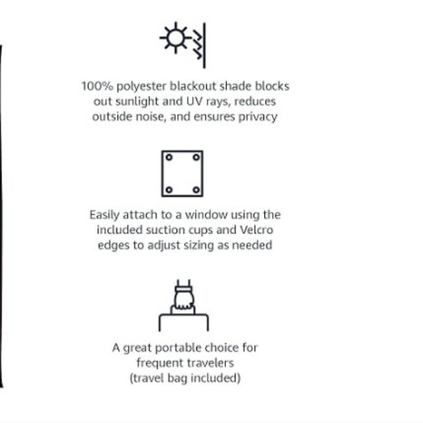 2 Portable Blackout Curtain Shades with Suction Cups, 50" x 78", Black