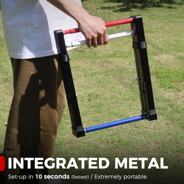 10 Second Setup, Zero Hassle – Say goodbye to complicated assembly! Our spring-loaded telescoping frame extends and locks in place instantly – no tools, no loose parts, no frustration. Perfect for spontaneous fun!