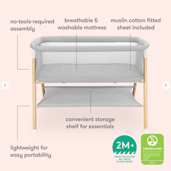 The only standalone bassinet with a Wovenaire® breathe-thru mattress for optimal airflow, reducing suffocation risk and keeping baby comfortable. Designed for better, longer sleep, it features: