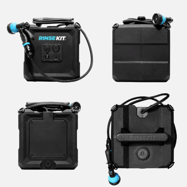 The RinseKit Cube is our 4-gallon portable shower that empowers you to clean up wherever adventure takes you. Equipped with battery-powered pressurization, the Cube boasts a consistent high-pressure spray that can blast off the toughest dirt and grime. It's super easy to use - simply pour in water, press the power button and spray. It is built tough with military-grade materials, and is equipped with stainless steel tie-downs for when the road gets rough. The Cube is the strongest, most durable, and intuitive portable shower on the market - made for keeping you clean no matter how far out you go.