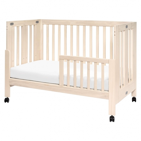 The Maki Full-Sized Folding Crib has clean, geometric lines and a foldable frame making it modern, portable and easy to store. Includes removable wheels and all-wood slat construction for lightweight mobility.