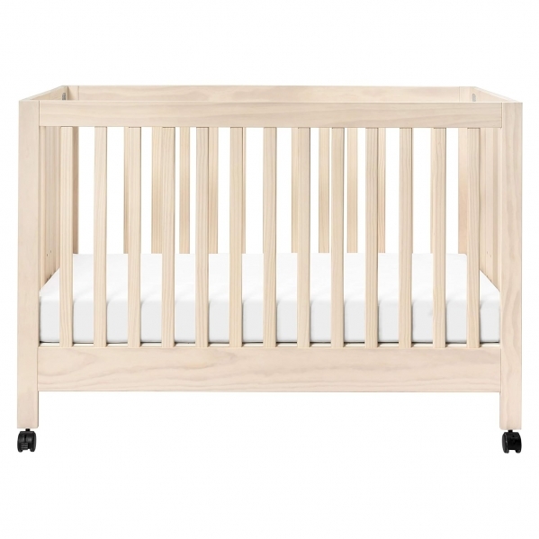 The Maki Full-Sized Folding Crib has clean, geometric lines and a foldable frame making it modern, portable and easy to store. Includes removable wheels and all-wood slat construction for lightweight mobility.