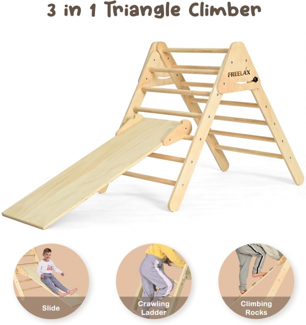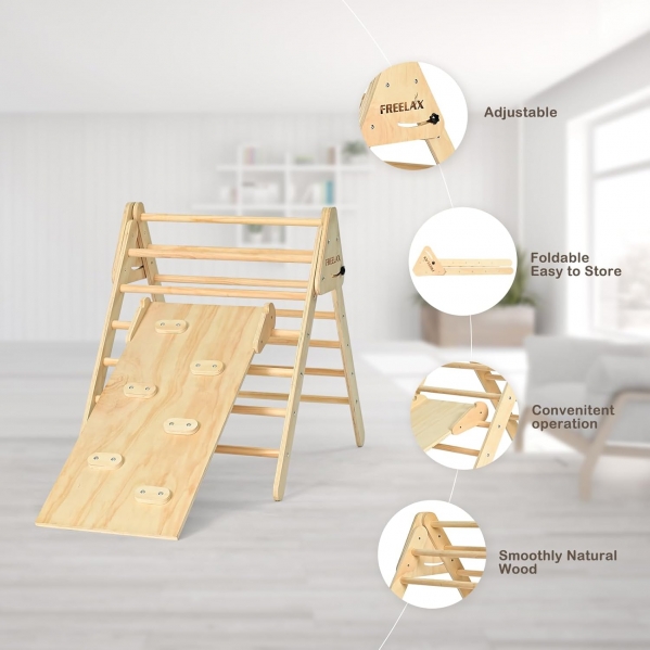 Foldable wooden climbing gym for children ages 1-6 years old.