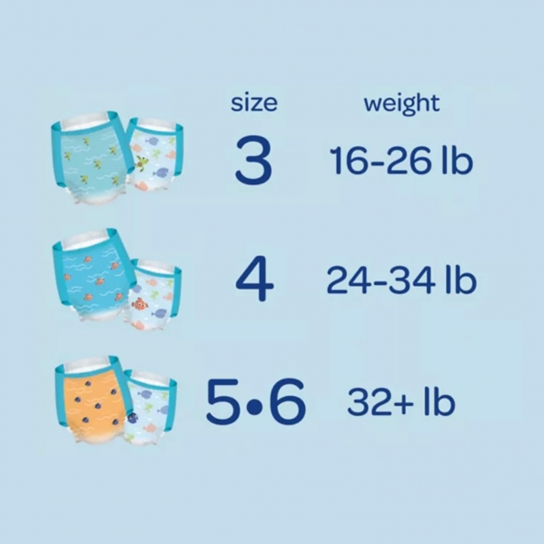 A pack of little swimmers and a pack of wipes (Pack includes 50-100 wipes, depending on brand (Pampers, Huggies, Honest). Specific products may be available upon request.