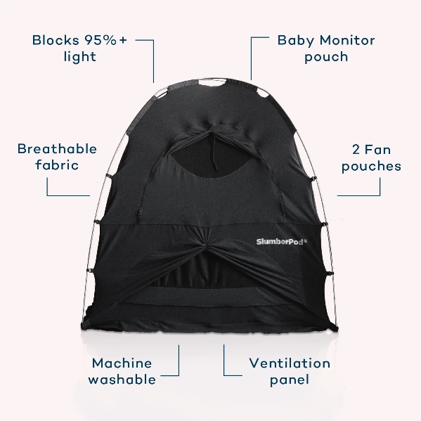 Meet the travel game-changer that allows babies and toddlers to dream sweetly with light-blocking magic! SlumberPod is the authentic original, invented by a mom and daughter duo to solve the age old problem of getting a good night's sleep when traveling with a baby or toddler. Pair with a playard, mini crib, or inflatable toddler air mattress for the perfect private sleep nook at home or on the go.