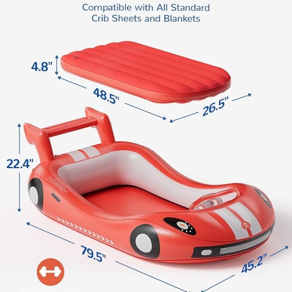 Make bedtime exciting and comfortable with this racing car–themed kids travel bed, designed to turn sleep into an adventure. Unlike standard travel beds, this inflatable mattress features raised sides and a fun race-car design, creating a cozy and secure sleep space that kids love—perfect for little car enthusiasts!