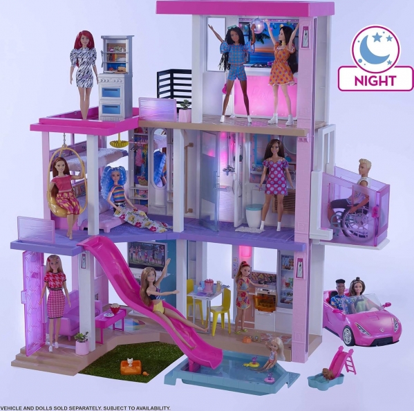 Standing 43 inches tall and 41 inches wide, this Barbie dream house has 360 degree play