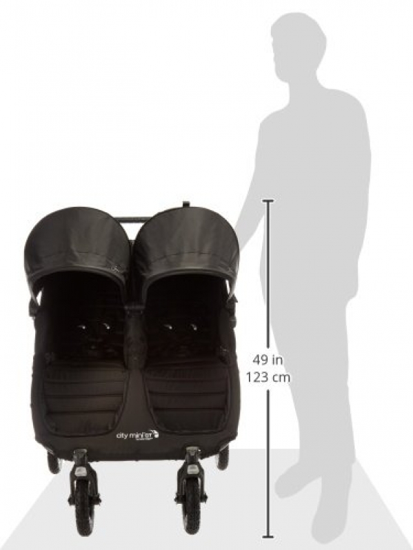The City Mini GT double stroller takes multi terrain strolling to the next level with all terrain capacities and deluxe standard features in a chic compact package. Its easy to use side by side design and all terrain tires make it perfect for both every day excursions in the urban jungle and weekend adventures off the beaten path. The City Mini GT twin stroller features patented quick fold technology with removable auto lock to keep stroller closed when folded, accessory mounting bracket, a flip flop friendly hand operated parking brake and an adjustable handlebar to accommodate users of all heights. The 8.5" quick release forever air wheels won't leave you flat and feature sealed ball bearings, front wheel suspension and dual lockable swivel front wheels for long distance strolling. The supportive plush padded seats recline to a near flat position and feature vented seat tops to increase airflow within the stroller with retractable weather covers to cover the mesh in inclement weather. The City Mini GT has roomy seats with a taller seat back and longer foot well to accommodate taller children. Also featured are individually adjustable sun canopies with peek a boo windows, adjustable five point safety harnesses with shoulder pads and buckle cover, a large and easy to access under seat basket, seat back storage compartments and a rear parking brake. The City Mini GT tandem stroller is the next generation in all terrain strolling with all the safety and style you'd expect from Baby Jogger. Maximum weight capacity of the City Mini GT double is 100 pounds. This stroller is not intended for jogging.