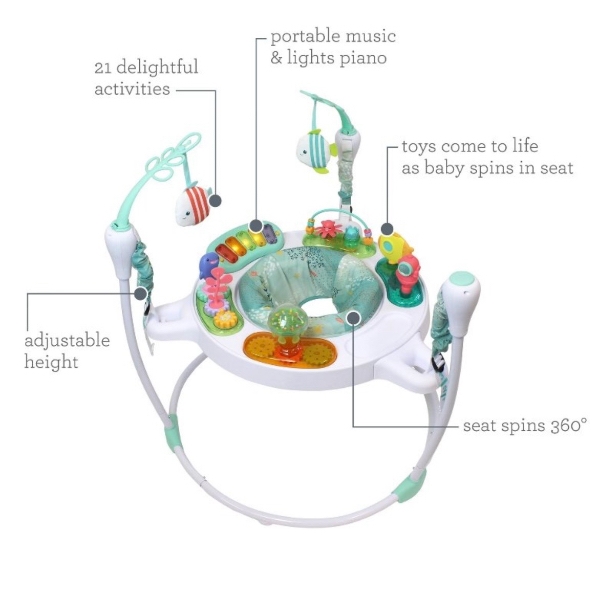 Get ready for an exhilarating playtime adventure with the Infantino Magic Motion Activity Jumper! With its 360-degree rotating seat, your little one can easily blast off into a world of fun, engaging with a variety of vibrant tray toys. The continuous bouncy motion adds an exciting twist, making every jump a joyful experience. This all-in-one activity center delivers maximum entertainment, ensuring your baby stays happily occupied. Watch as the toys spring to life with every spin, creating an interactive wonderland! With 21 exciting play activities to explore, there’s always something new to discover. Fuel your child’s curiosity and imagination with this ultimate playtime companion!