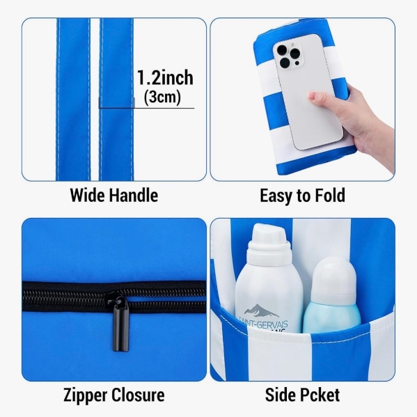 A large beach tote is a necessity! This Beach Bag rental offers a stylish and spacious, easy-to-carry solution for toting your beach essentials. No need to pack one! BabyQuip makes family travel easy by helping you pack light. Add a note if you have a preference for the royal blue or turquoise color.