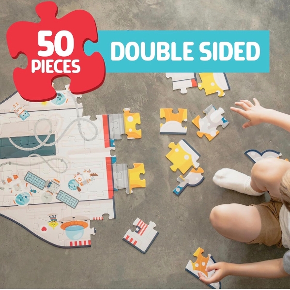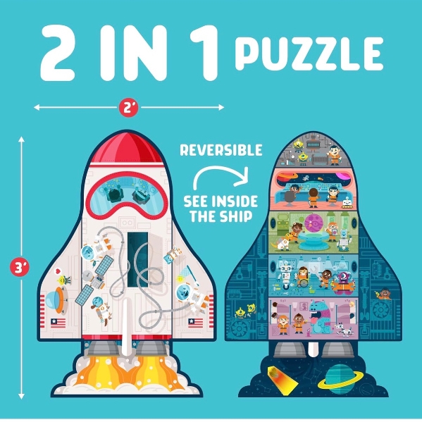 • REVERSIBLE: Once one side is completed, the other side can be put together for a 2nd puzzle! One is the outside of the spaceship, and the other is the inside of the spaceship. 🚀