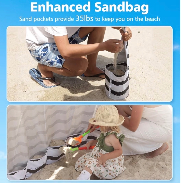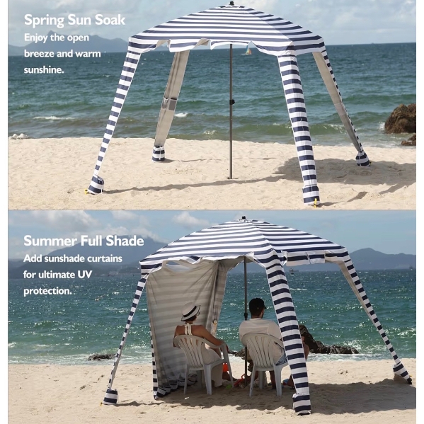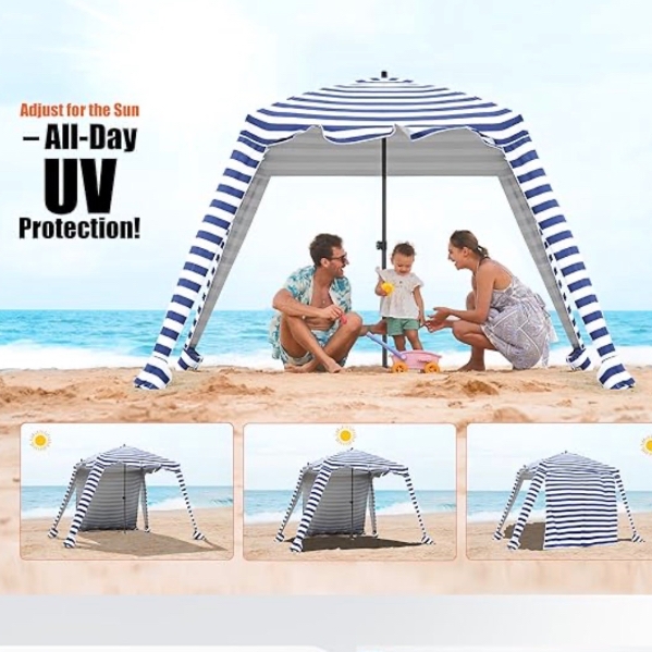 This pop-up cabana tent rental offers quick shade for adults and a cozy play space for kids. Great for beach trips, parks, and even the backyard of your Airbnb/VRBO! Super easy to setup since it just folds out like an umbrella (see video). Comes in a bag for easy carrying.