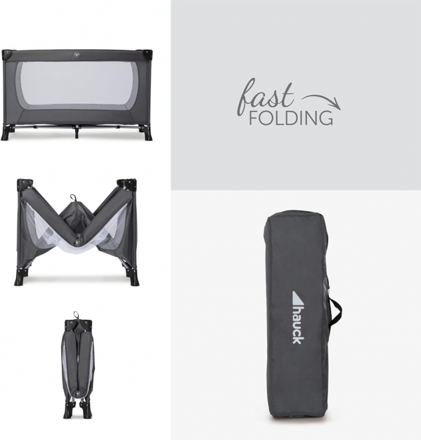 The perfect travel crib, he versatile Dream N Play Plus travel crib features large viewing windows and a practical side exit. Your child can crawl out of it independently through the hatch. This lightweight travel crib is quick and easy set up and folded down in no time. Its folding size is very small and can be thus stored flexibly and space-savingly. The Dream N Play Plus is the ideal companion for travelling or visiting grandma and grandpa. It gives your child the necessary feeling of security on your trips. Both the padded folding ground and the practical carrying bag are included. Recommended for ages 0 to 36 months, max weight of 33 lbs. Open Dimensions: 49.2 x 25.6 x 29.9 inches, 20 lbs. Folded Dimensions: 9.5 x 9.8 x 29.9 inches