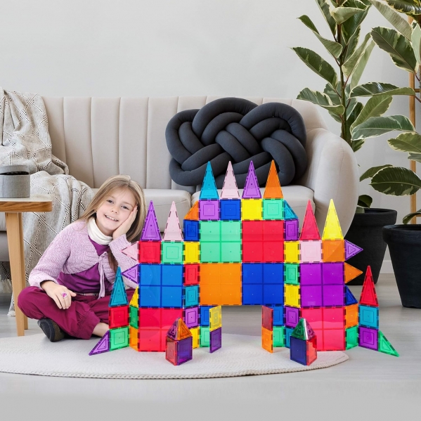 CREATIVITY BEYOND IMAGINATION - Magnet Building Tiles Clear 3D color Magnetic Building Blocks Playboards for preschool, pretend play and more. Easy to construct and easy to put away for storage.