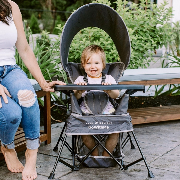Rent Baby Gear INCLUDING Baby Delight Go with Me Chair | Indoor/Outdoor Chair with Sun Canopy | Gray | Portable Chair converts to 3 Child Growth Stages: Sitting, Standing and Big Kid | 3 Months to 75 lbs | Weather Resistant | BabyQuip