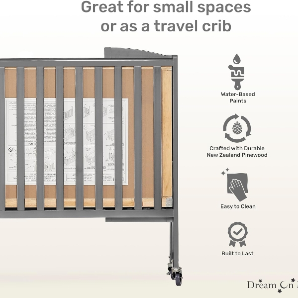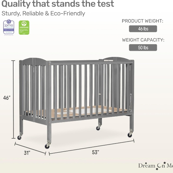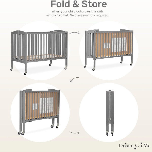 CRIB FULL SIZE: Dream On Me Full-Size Folding Crib Storm Grey