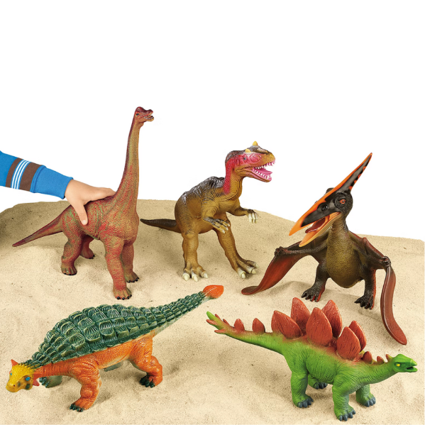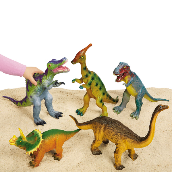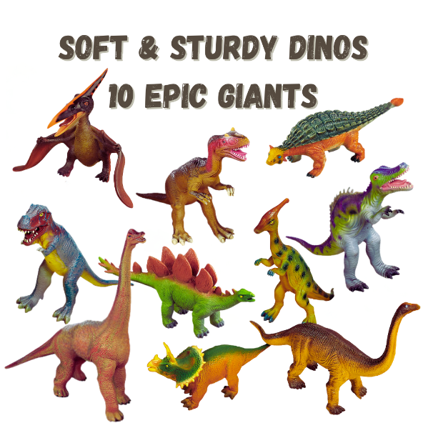 Children come face-to-face with their favorite prehistoric creatures! From triceratops to tyrannosaurus, our jumbo-sized set features 10 popular species—all molded from soft, squeezable vinyl to keep kids safe. Each dinosaur has its name printed on bottom.