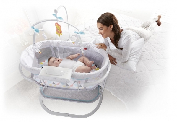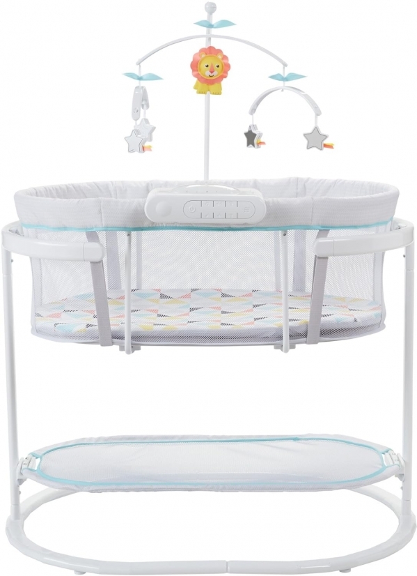 The Soothing Motions Bassinet has everything to help your baby drift off to dreamland in comfort. As little ones relax on the comfy sleeping pad, they can look up at the mesmerizing overhead mobile with stars while they gently sway.