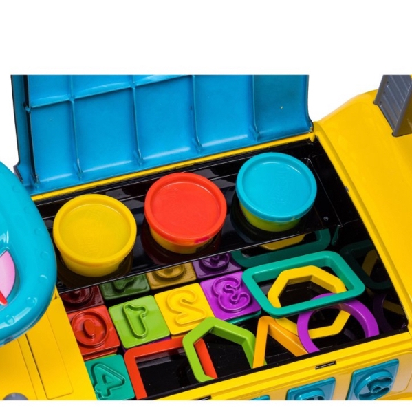 Play-Doh Activity School Bus - Push and Ride On Toy Car for Kids Up to 44 Lbs, Lights and Sounds. Includes Shape and Number Cutters, Play Doh Set, Kids Ride On Toy.