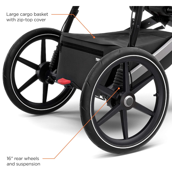 The Thule Urban Glide 2 is the perfect all terrain stroller for the active family. Whether you’re looking for a jogging stroller to take on your favorite path or a full size stroller to easily navigate throughout town, the Thule Urban Glide 2 delivers. Designed with a comfortable seat, a padded 5-point safety harness, and a multi-position canopy with ventilation, your precious cargo is sure to enjoy the ride. The silent, one-handed recline is perfect for naps on the go. This three wheel stroller provides an ultra smooth ride thanks to the large 16" rear wheels and suspension system. The front swivel wheel makes it easy to maneuver through town and locks into place for jogging. The integrated twist hand brake gives parents control of hilly terrain the adjustable handlebar provides an ergonomic grip for any sized adult. A magnetic peekaboo window allows you to check on your child without disturbing them, even while they sleep. Bring all you need for the day in the large cargo storage bin with a zip-top closure to keep all contents secure, even when folded. Storing and transporting is easy thanks to the one-handed compact fold. Supports a weight capacity of 75 lbs.