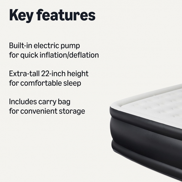 22in Height Blow up Mattress with Built in Pump Queen (Limit: 600 lbs) - NA Plug